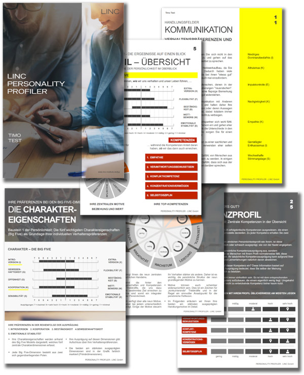 - Persönlichkeitstest: Linc Personality Profil, auf Wunsch auch nur online